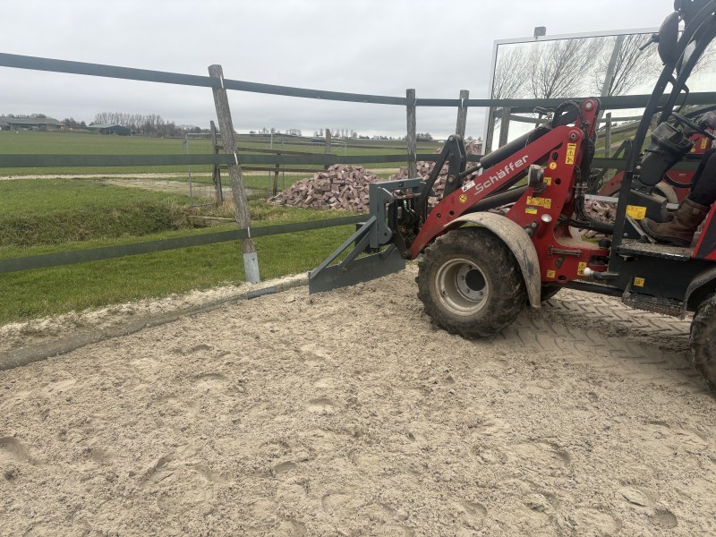 Voor het gemakkelijk naar binnen halen van de hoefslag. Kan in elke gewenste breedte geleverd worden. Ideaal voor gebruik in manegebak, stapmolen, paddocks, longeercirkels enz. Kan zelfs gebruikt worden voor het leeg trekken van de paardenboxen.